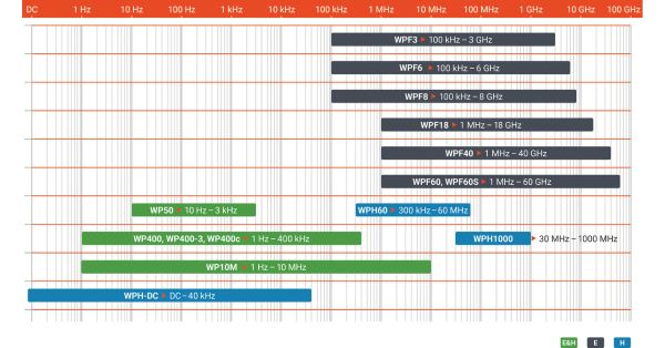 By selecting the probe to suit your application, the SMP3 meter will cover from DC-60Ghz with E&H, E, or H response as per the table following. When you need to add an additional frequency range, you simply order a new probe. No need to buy a whole new meter!